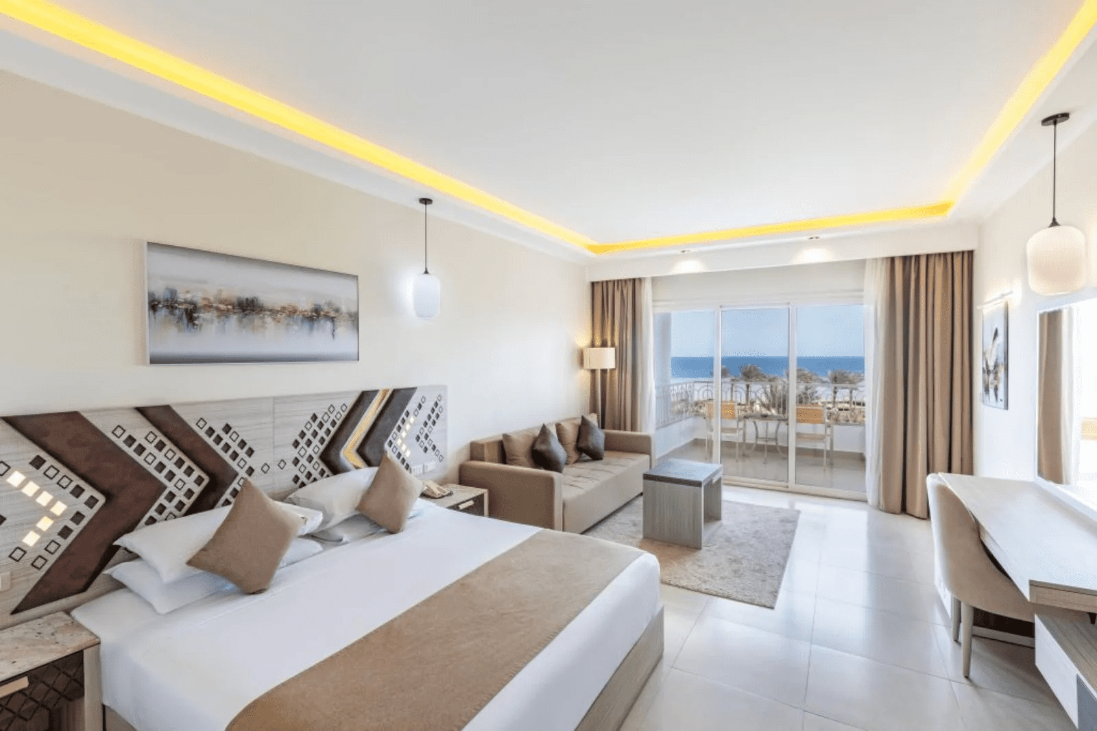 Le 208 camere standard possono ospitare un massimo di 2 adulti + 2 bambini o 3 adulti + 1 bambino; le 55 camere superior, situate al primo o secondo piano, con arredi moderni ed eleganti e vista mare possono ospitare un massimo di 2 adulti + 2 bambini o 3 adulti + 1 bambino, le 42 nuovissime camere diamond, con vista mare e arredamento dal design moderno e raffinato, possono ospitare fino a un massimo di 2 adulti + 2 bambini o 3 adulti. Per necessità di spazi più grandi sono disponibili le nuove family suite costituite da due camere da letto separate da una porta e un bagno, che possono ospitare fino a 6 persone (5 adulti + 1 bambino) e standard comunicanti (solo su segnalazione e confermabili una volta in loco solo se disponibili). Tutte le camere sono spaziose e dispongono di servizi privati con doccia, asciugacapelli, climatizzazione regolabile, TV satellitare con canali italiani, cassetta di sicurezza, telefono, bollitore per la preparazione di tè e caffè all’americana, una bottiglia di acqua da un litro e mezzo al giorno, balcone o terrazzo. A pagamento: servizio in camera e minibar. Nell’elegante ala Deluxe, si trovano 106 camere deluxe e 4 presidential suite. Le camere deluxe sono spaziose, dotate di area soggiorno e dispongono di un letto matrimoniale e di un divano letto (fino al 30/4 massimo 3 adulti oltre i 14 anni; a partire dal mese di maggio 2 adulti e 2 bambini o 3 adulti e 1 bambino). Oltre a quanto indicato per le camere standard, i clienti sistemati nelle superior, deluxe e diamond dispongono di accappatoio e ciabattine da camera, cesto di frutta e minibar rifornito di birra e soft-drink all’arrivo. Le presidential suite sono estremamente lussuose e spaziose (92 m2 circa), composte da camera da letto, 2 bagni, ampio salone con vasca idromassaggio a due posti con vista sul mare, 2 terrazze sul mare (massima occupazione 2 persone oltre i 14 anni, disponibilità su richiesta). Per tutti gli ospiti late check-out, soggetto a disponibilità, e formula tutto incluso fino all’ora di partenza.
