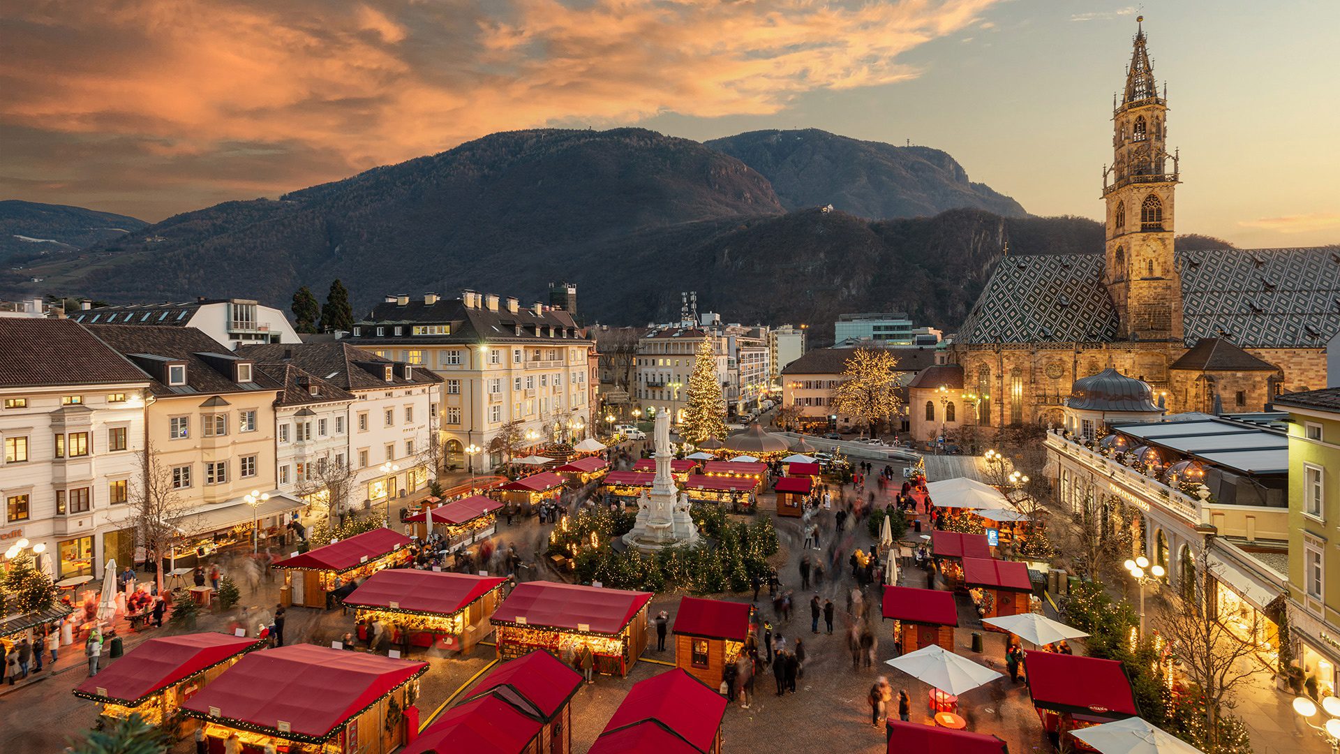 in piazza Duomo, dove un tempo si commerciava il bestiame, nel periodo natalizio la gente del posto e gli ospiti si incontrano e si godono i prodotti tipici dell’Alto Adige circondati dalle tradizionali casette di legno, dagli alberi addobbati a festa e dal capitolo del Duomo.