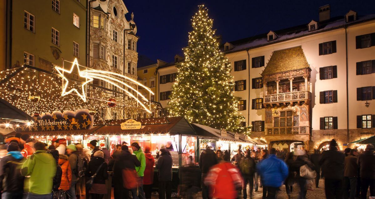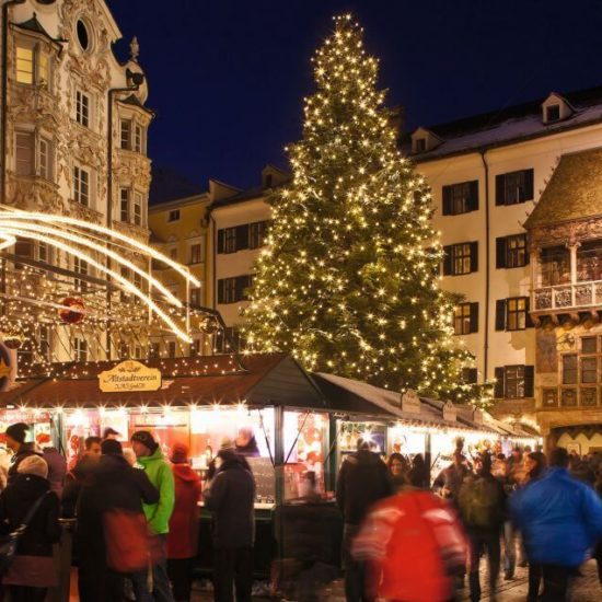 Dopo la prima colazione, trasferimento a Innsbruck e breve visita guidata del centro storico. Pranzo “2 portate” in ristorante e pomeriggio dedicato ai mercatini di Natale: